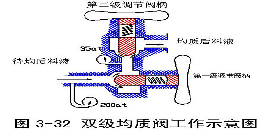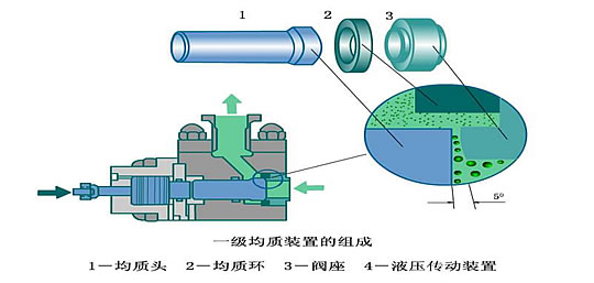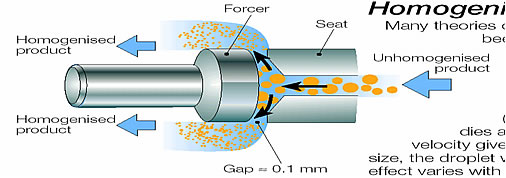 (2)撞擊學說:由于三柱塞往復泵的高壓作用,液滴與均質閥發生高速撞擊,從而導致液滴破裂變小,起到均質的作用。