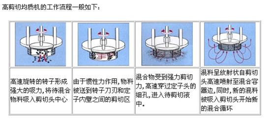 高剪切均質機是目前用的**廣泛的均質機,由轉子或轉子-定子系統構成,工作時高速回轉,在葉片作用下流入的液體通過窄小的縫隙,在很高的剪切力作用下破碎、分散、混合。經過高剪切均質機的物料粒徑可達到1μm,且穩定性好,能耗低,對材質也無特殊要求。