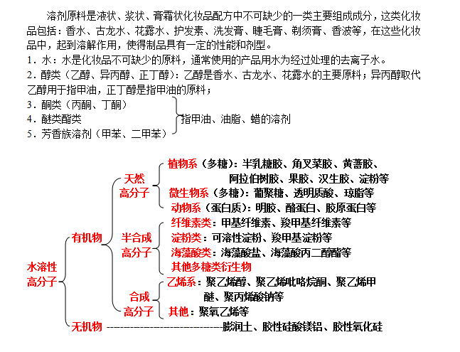 3.掌握化妝品中粉質、膠質、溶劑在化妝品中的作用及常用的原料